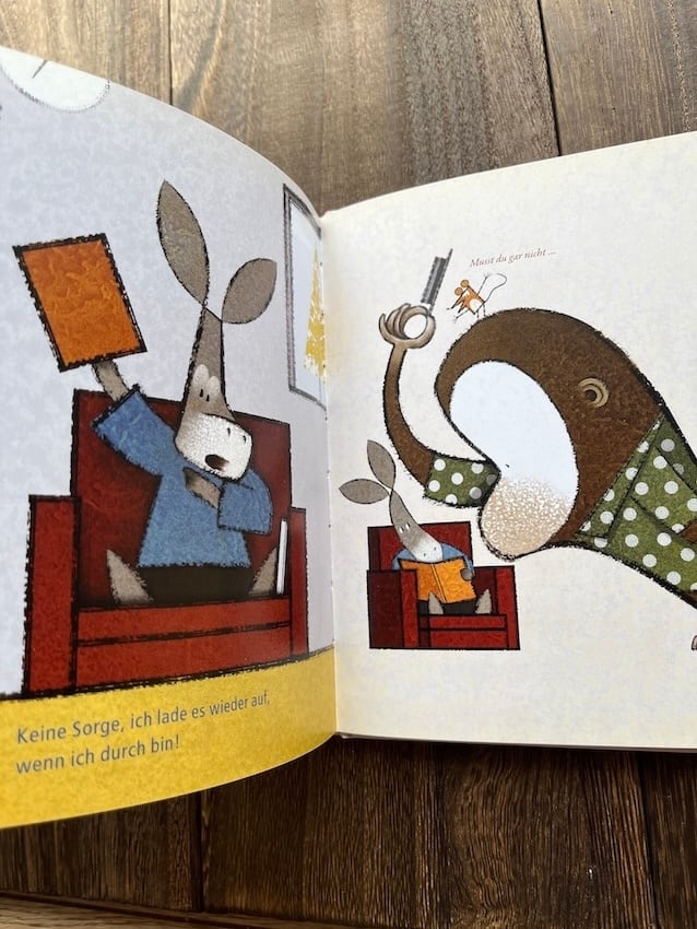 「本って何?それって何に使うの?ブログも、メールも、ツイッターも、スクロールもできないよ。そろそろ異論が出てもおかしくないよね。レーン・スミスは、ロバ、サル、ネズミのキャラクターを使って、その疑問に答えてくれるよ。有名なニューヨークのイラストレーターが、本(の再)発見の寓話を、簡単な言葉と面白い絵で語ってくれるんだ。スクロールよりもページをめくることを好むすべての人々に、理想的な贈り物です。」