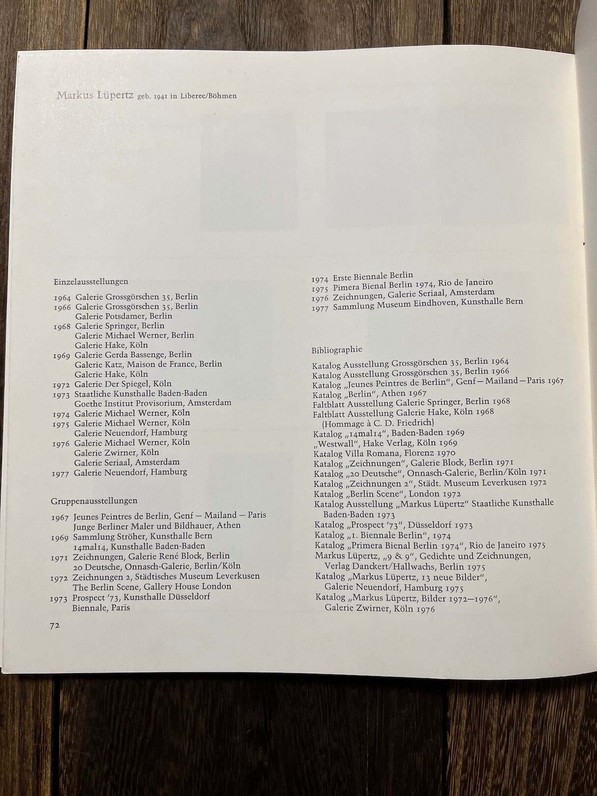 Markus Lüpertz',, Katalog zur Ausstellung in der Hamburger Kunsthalle 1977