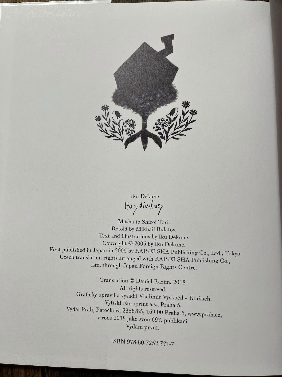 日本で2005年に発売された『マーシャと白い鳥』のチェコ語版です。