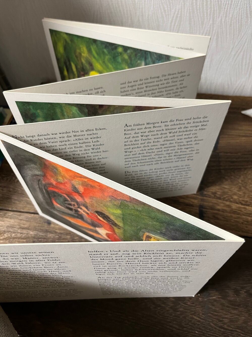 ジャバラ絵本です。片面にイラスト、もう片面が文章になっています。