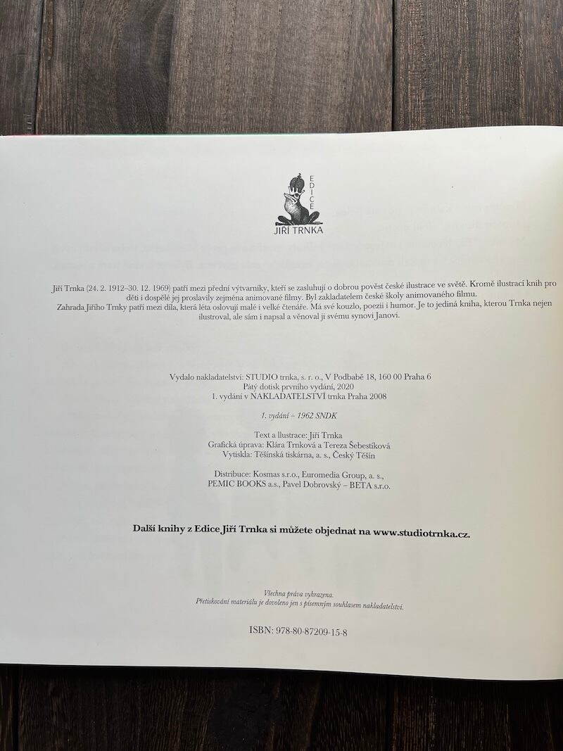 『イジー・トルンカの『庭』は、長年にわたって子どもたちや大人たちを魅了してきた作品のひとつだ。この作品には、独自の魅力、詩、ユーモアがある。5人の少年たちが、古ぼけた門を開けて美しい庭に入り、そこで賢い年老いた小人やいたずら好きな猫と出会い、さまざまな秘密を発見する。』