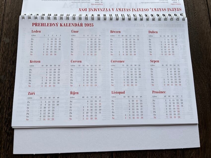 (チェコの聖人が日毎に名前が書かれており、その週に一人の諸説が書かれています。)